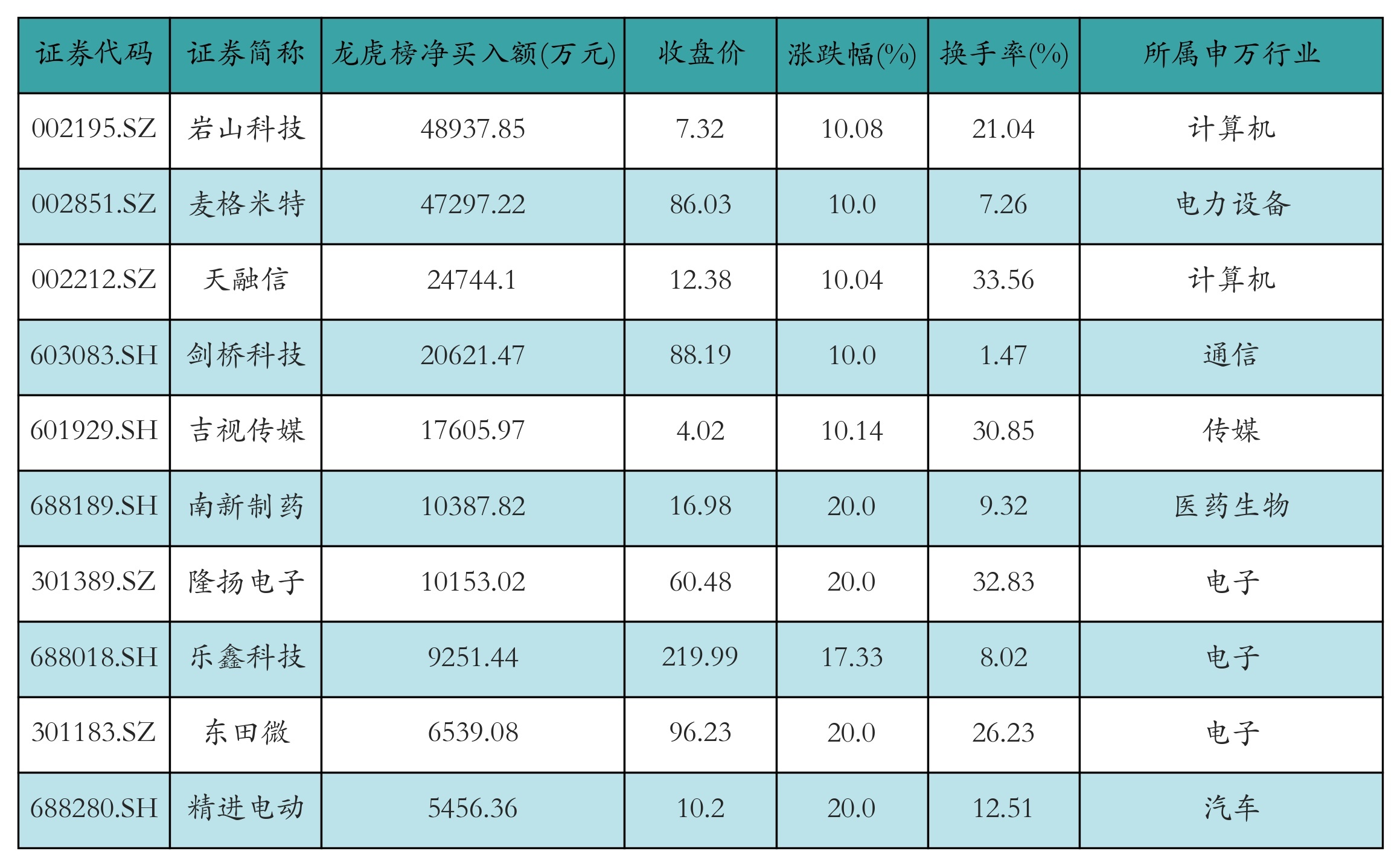 四、龙虎榜情况
